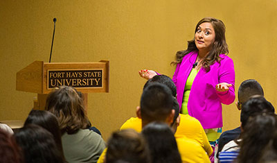 “Here at Fort Hays State, you don’t only have a community, you have a family to support you,” she said. “As the fastest-growing minority in the United States, you need to be educated so you have access to meaningful careers; you need to be educated so you are an integral part of the economic engine of our state and of our nation.”