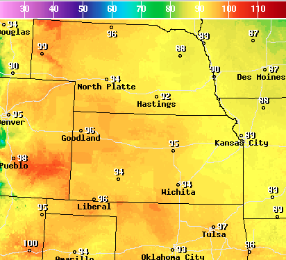 Saturday A 20 percent chance of showers and thunderstorms. Mostly sunny, with a high near 95. South southwest wind 11 to 16 mph.