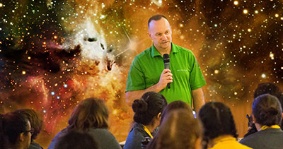 After Erdman’s presentation, Steve Jacobs, chief scientist with Faraday Studios, led an interactive talk with the students from his studio in Wichita. Jacobs’ presentation was about science communication.