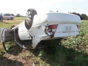 The driver lost control of the vehicle at Stimmel Road when she swerved to avoid a puddle in the road. The vehicle traveled into a field and rolled.