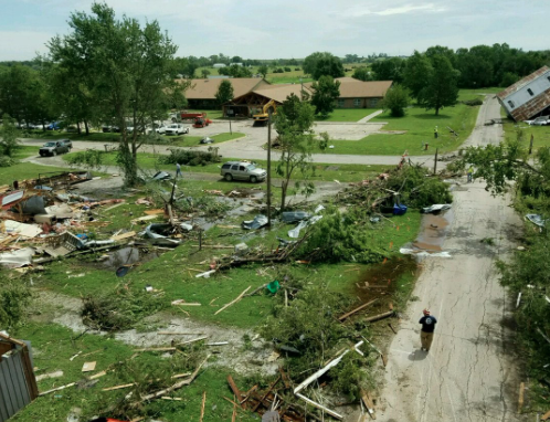 The National Weather Service said Friday preliminary information shows that an EF2 tornado hit Eureka, a town of roughly 2,600 residents east of Wichita. The tornado damaged about 50 homes and businesses, including the Eureka Nursing Center.