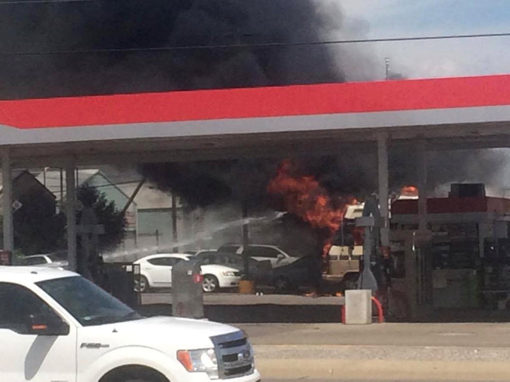 While crews worked to extinguish the fire, traffic was blocked from entering and exiting the north parking lot.
