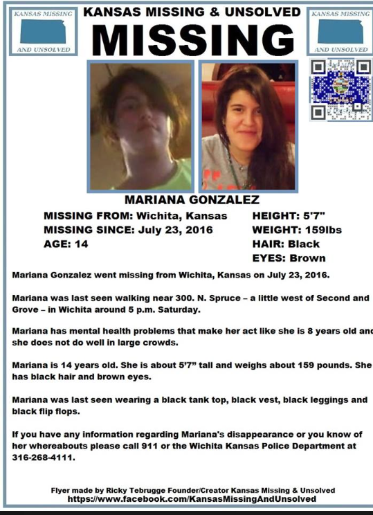 Wichita Police reported 14-year-old Mariana has been missing since Saturday.