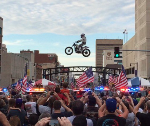 Highlight of the evening was daredevil Doug Danger’s successful motorcycle jump over 15 Topeka Police vehicle in front of the Kansas Statehouse, according to Downtown Topeka.