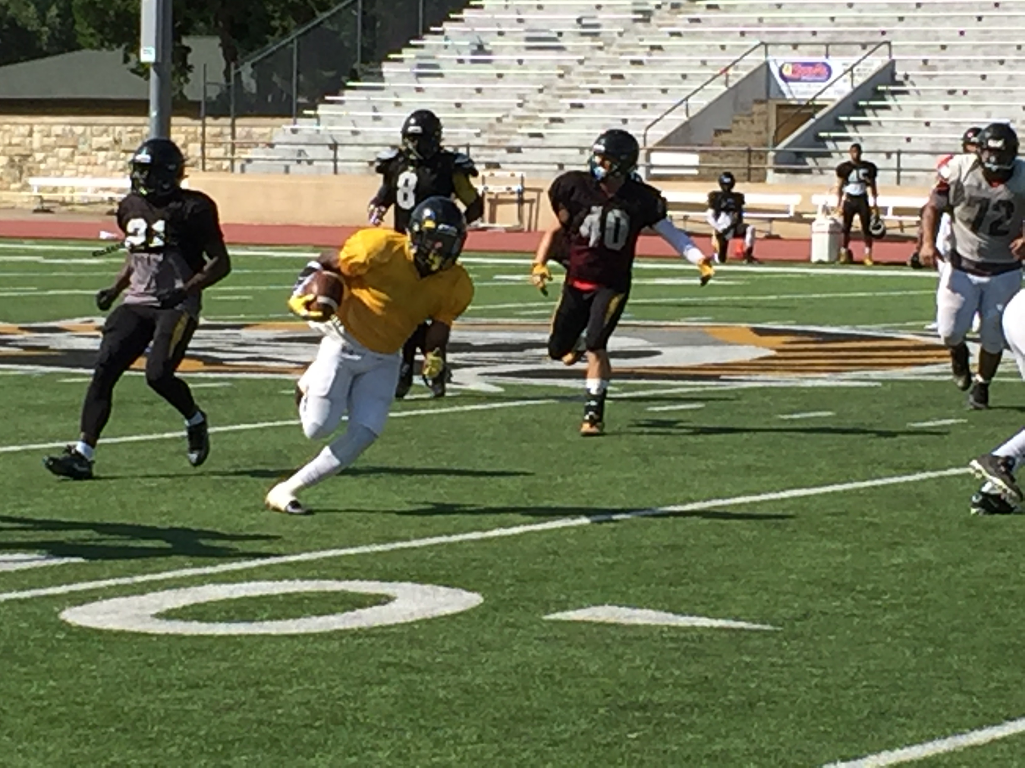Junior running back Shaquille Copper, scored on a 46-yard touchdown run on his first carry of the day. Cooper, Malik Thomas and Kenneth Iheme were all wearing yellow jerseys and held to limited contact.