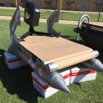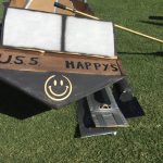 Braun credited her husband Jeff for the boat design–“he has one similar to it at home, and he said this is the way to go.” The three women, their significant others, along with Bank of Hays CEO Randy Walker and his son built the S.S. Pokémoney in the Braun’s garage using cardboard and duct tape as required by the race rules.