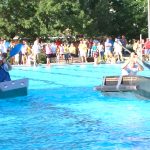 Although she struggled using the oars, Braun made it to the other end of the pool without taking on any water, “other than what maybe what I threw in with the oars,” she laughed.