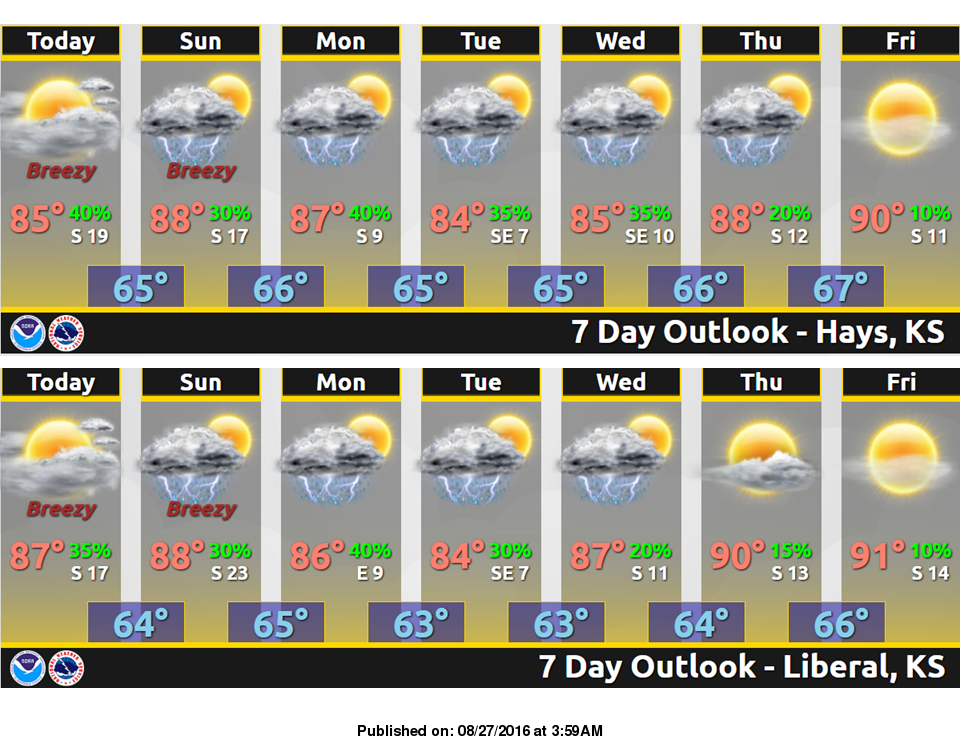 FileLBreezy and partly sunny conditions today will be matched with highs just a few degrees on the cool side of normal for late August. By late this evening, non severe thunderstorms will again be possible, mainly across the northern counties and the interstate 70 corridor through 4 am Sunday morning.