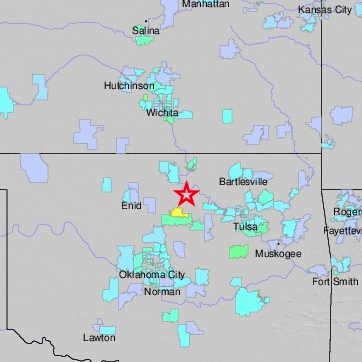 5.6 magnitude quake rumbled thru Norton, KS this morning at 7:02 am, was centered 14 km NW of Pawnee, OK. Also felt as far S as Dallas, TX.