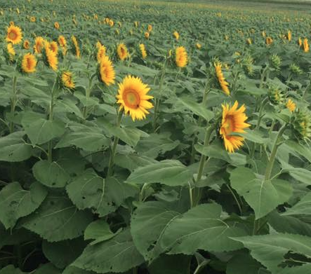 The Kansas City Star reports the Grinter farm in Leavenworth County has drawn huge weekend crowds as the 40 acres of sunflowers reaches its peak, which is in late August and early September.