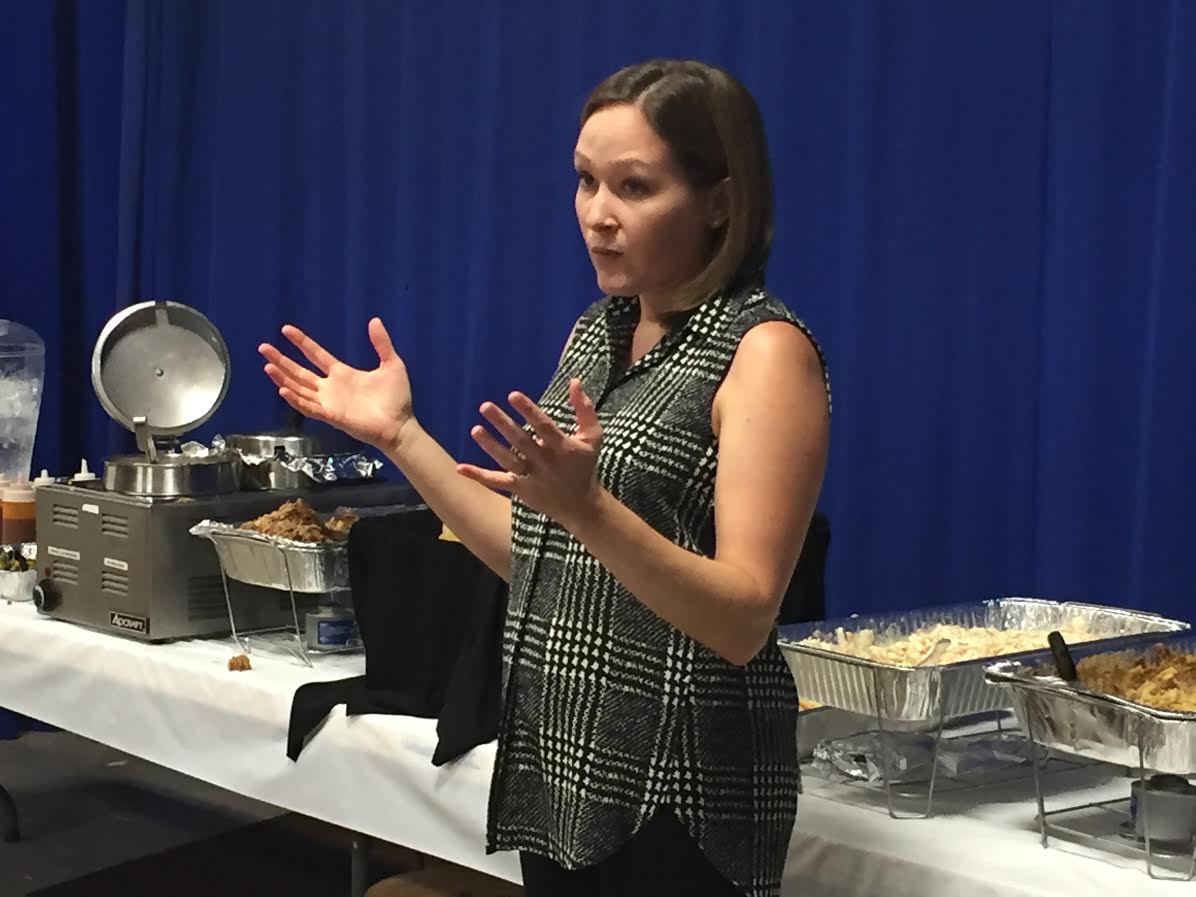 Travis Kohlrus, Eagle Broadband Manager, explains the company’s pledge to match employee donations to UWEC.