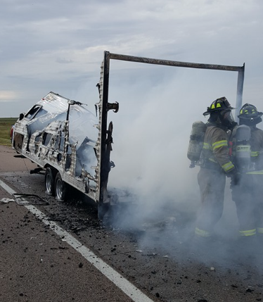Initial units arriving on scene reported a fully involved trailer with fire spreading to the surrounding ditch.