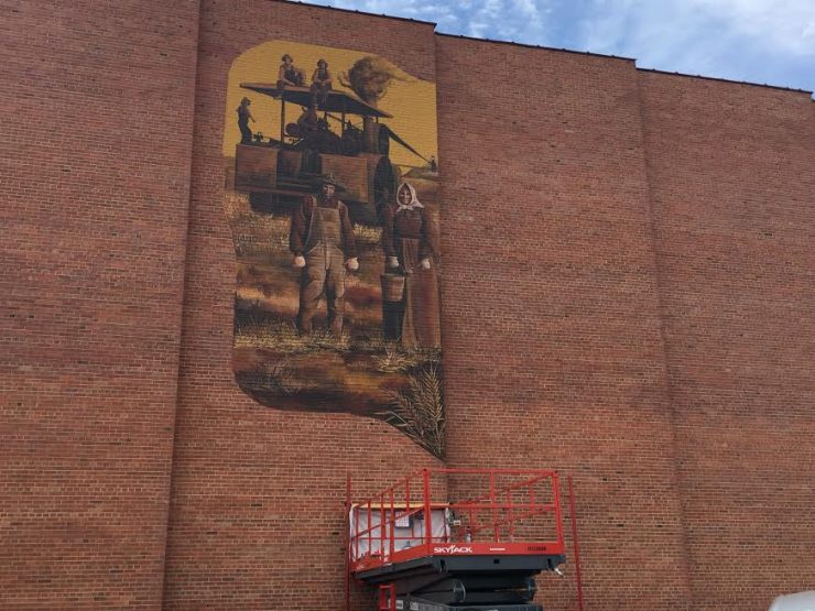 This one, in collaboration with the Hays Arts Council, features the 2017 Sesquicentennial–the 150th anniversary–of Ellis County, and this mural will stay right in Hays.