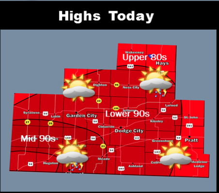 Another cool down is headed for southwest Kansas as strong cold front moves into western Kansas today and then into eastern Kansas and Oklahoma on Tuesday. Showers and thunderstorms will be possible along with much cooler temperatures on Tuesday.