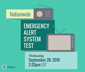 FEMA’s Integrated Public Alert and Warning System (IPAW) will hold a national test of the Emergency Alert System (EAS) on Wednesday, September 28th, 2016 at 1:20p.m. CDT.