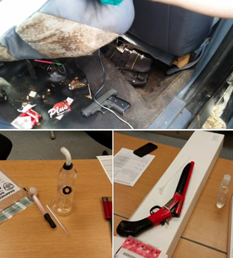 Further investigation revealed the group possessed two pistols, a sawed off shotgun, drugs and drug paraphernalia.