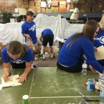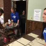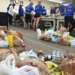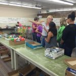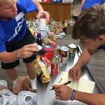 Twenty-seven groups of local volunteers canvassed the town, bringing in bags and boxes filled with everything from peanut butter to cereal donated by Hays residents. Then the DECA students and other volunteers at CAC unpacked and sorted it all. “I won’t have to lift weights tomorrow,” joked one DECA member as he unloaded a cart.
