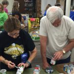 Two regular CAC volunteers, Barbara Basinger and Bob Berens, got a head start. They distributed notices about the food drive to 39 local businesses and then went back to retrieve the goods donated at those locations. “We got more than 500 items before today,” Basinger said as the pair volunteered again Tuesday night to sort and count cans.