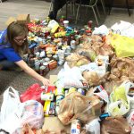 McKenzie Hoover, HHS DECA junior, was working the food drive for the first time. “This looks like Christmas, a yummy Christmas!,” Hoover remarked while sitting in the midst of a huge pile of donated goods .
