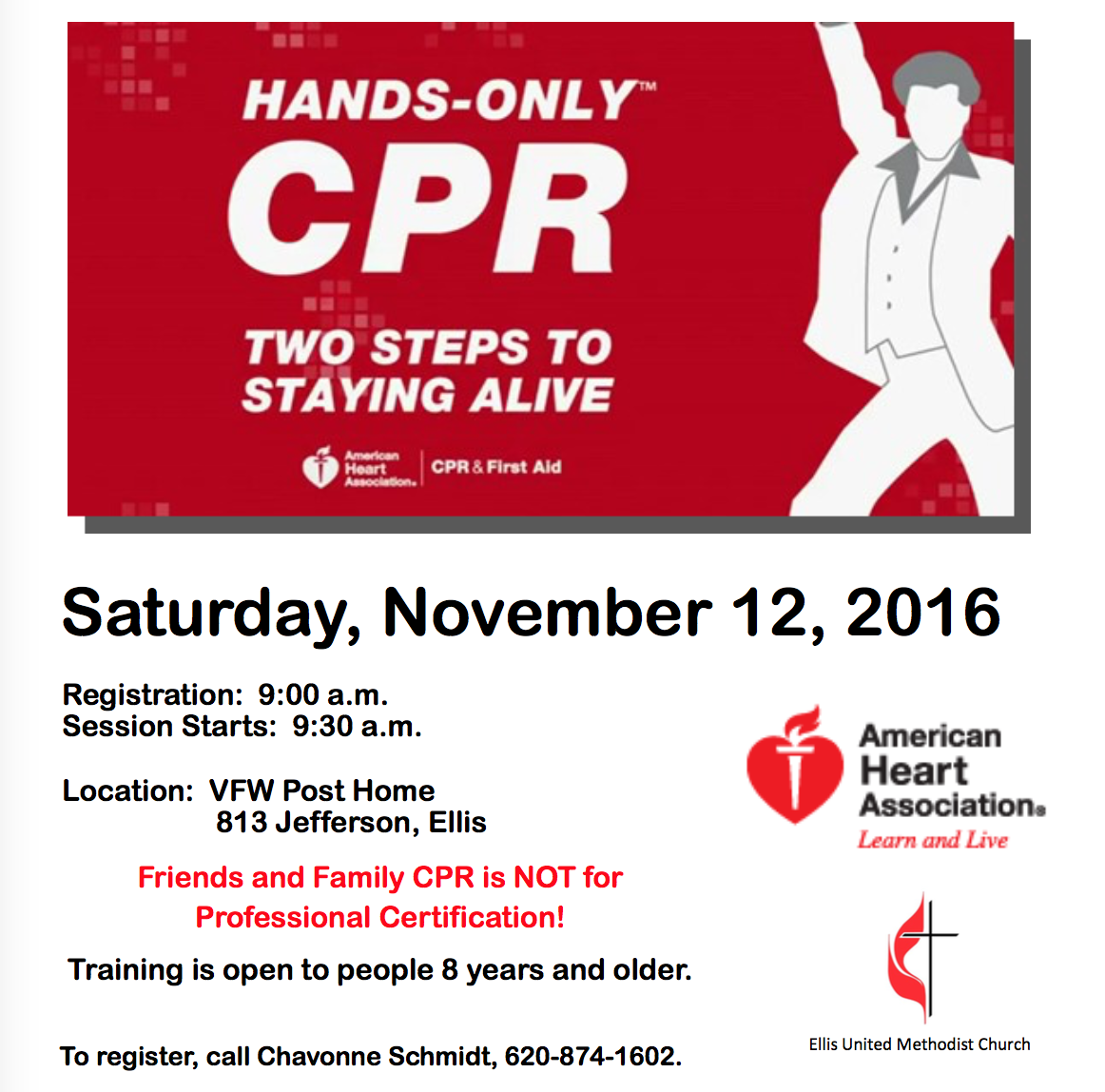 screen-shot-2016-10-21-at-10-38-39-amELLIS — The community is invited to attend Hands-Only CPR training next month in Ellis. Hands-Only CPR is for people who want to learn CPR but do not need a CPR course completion card to meet a job requirement.