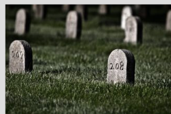 The Osawatomie State Hospital campus includes gravestones marked with numbers. A report written in 1948 for the Kansas Board of Health noted that one-third of the approximately 46,000 Kansans who had entered state mental health hospitals between 1866 and 1946 had died in them.