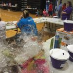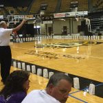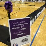 Saturday afternoon the medical oncologist/hematologist at HaysMed Dreiling/Schmidt Cancer Center used a big blue piece of chalk to draw an imaginary hopscotch outline on the floor of the basketball arena at Fort Hays State University Gross Memorial Coliseum, site of the 2016 Ellis County Relay For Life.