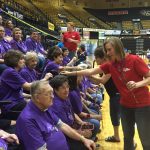 At the end of the six-hour event with the arena still dark following the luminary ceremony, RFL co-chair Deb Alvarez, a nurse at the Dreiling/Schmidt Cancer Center, announced donors raised $34,409.64 for cancer research overseen by the American Cancer Society (ACS).
