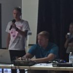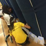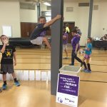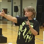 “In hopscotch you’re always moving forward; you’re never moving back. Sometimes we move forward by one box and sometimes we move forward two boxes.” Coe illustrated as she talked, jumping forward towards to the crowed, with her microphone in hand.