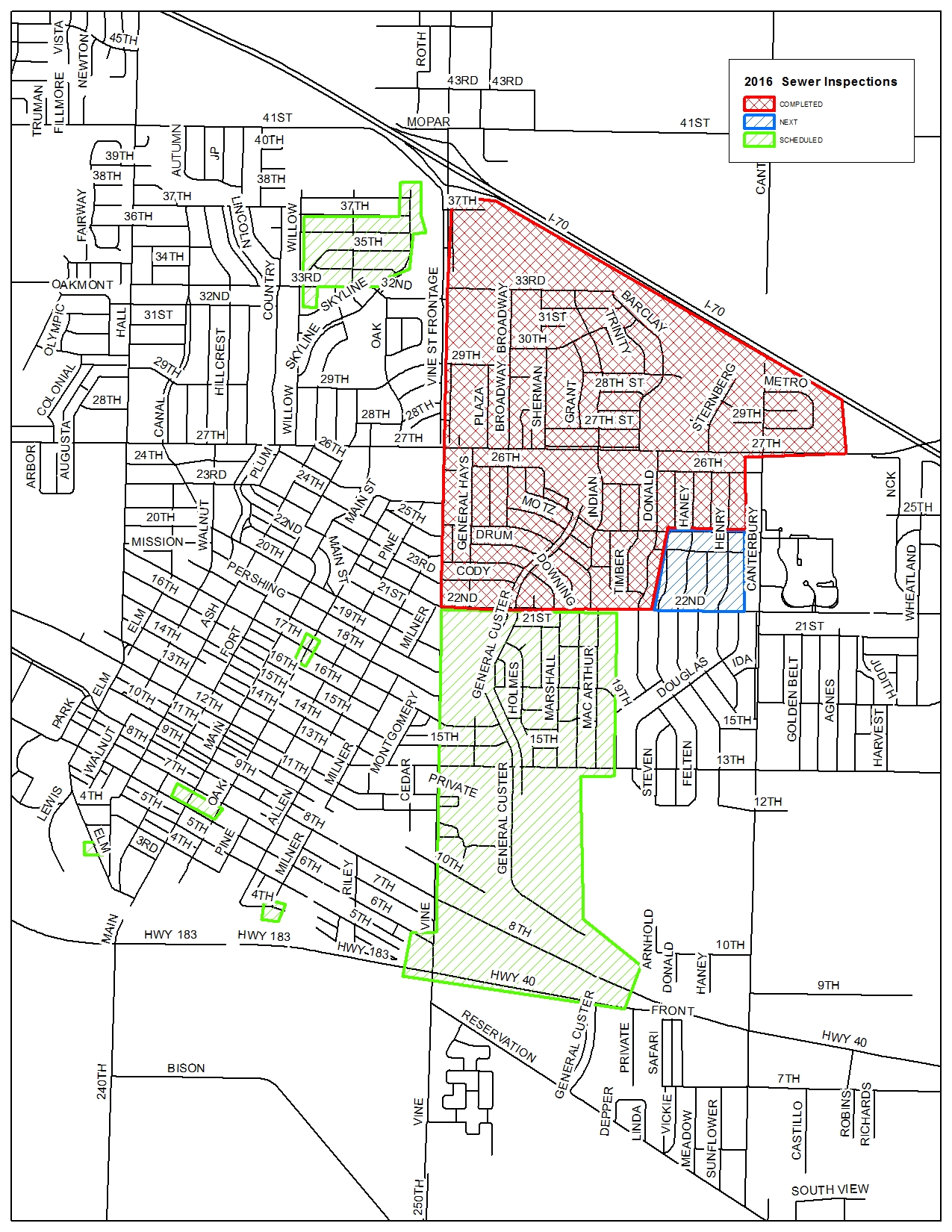 The city of Hays Utilities Department has contracted ProPipe to conduct sewer line cleaning and inspections at the locations described on the maps.