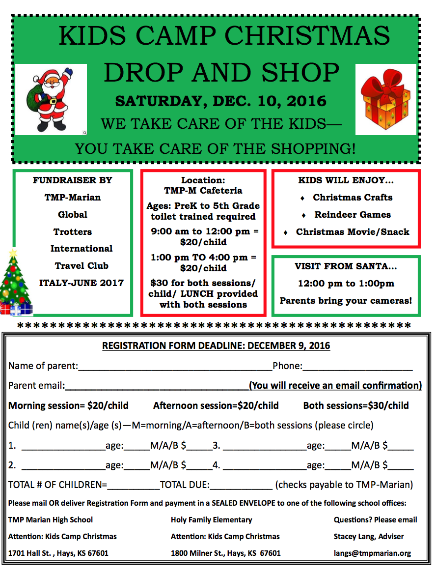 Looking for a way to do some shopping — and keep the gifts secret from the children? Thomas More Prep-Marian Global Trotters International Travel Club is offering a chance to Drop and Shop on Saturday.
