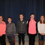 The winners, pictured above, from right, were: 1st Place: Madison Meis, 2nd Place: Emily Stenzel; 3rd Place: Haley Rees; 4th Place: Trace Hale; Alternate: Harley Werth). They are all fifth-graders at Roosevelt and will go on to compete in the county spelling bee at Fort Hays State University.