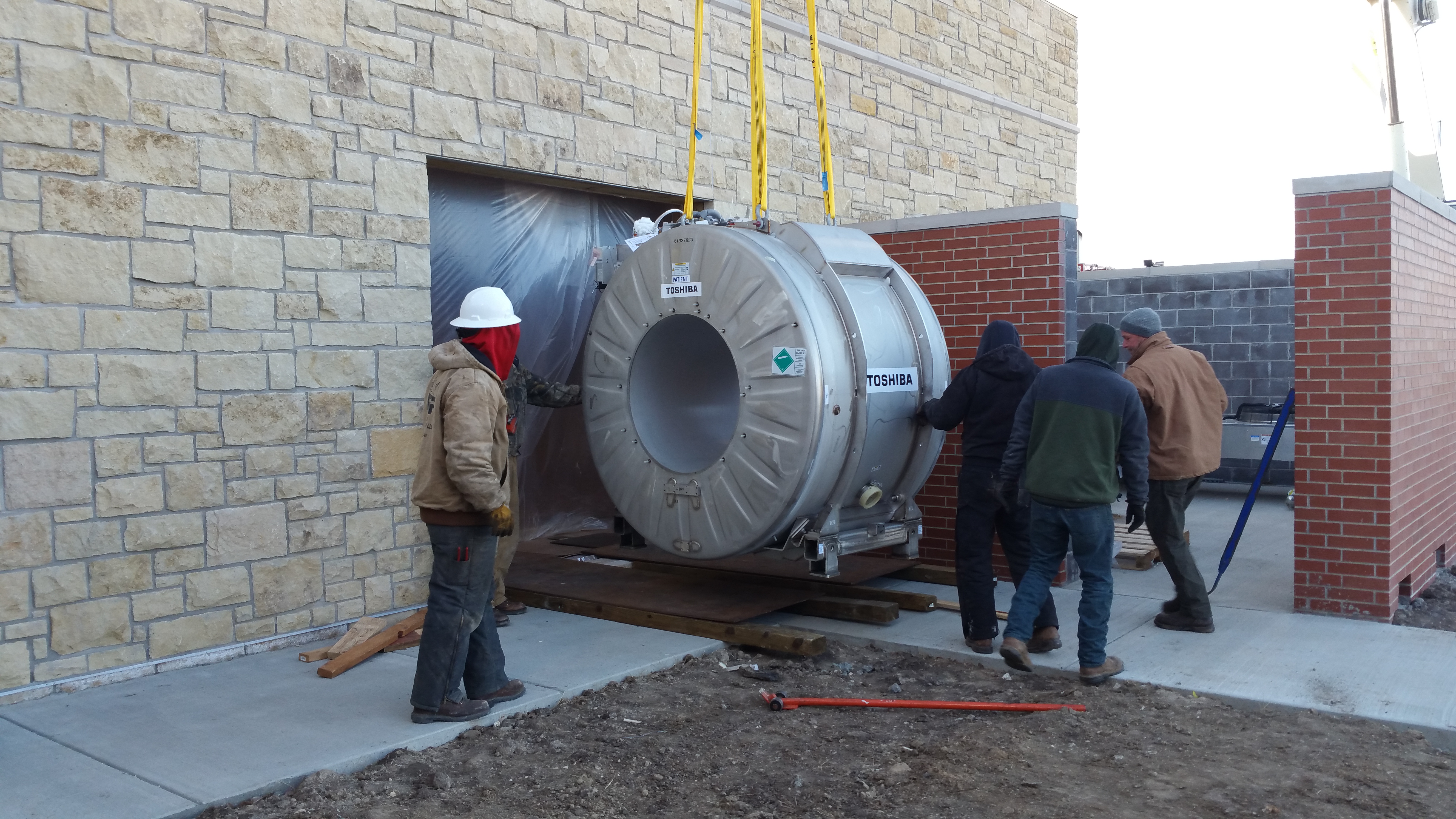 PLAINVILLE– The magnet for Rooks County Health Center’s new MRI & Nuclear Medicine suite arrived on-site Wednesday, January 4. The 4 1/2 ton magnet, known in the industry as the OR200, is the core of the Toshiba built Vantage Titan Magnetic Resonance Imaging unit and it is the only one of its kind in Kansas or Missouri.