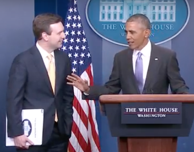 Obama says Earnest is “tough and didn’t always give you guys what you wanted,” but that he tried to make sure to share as much of the administration’s vision and policy as possible.