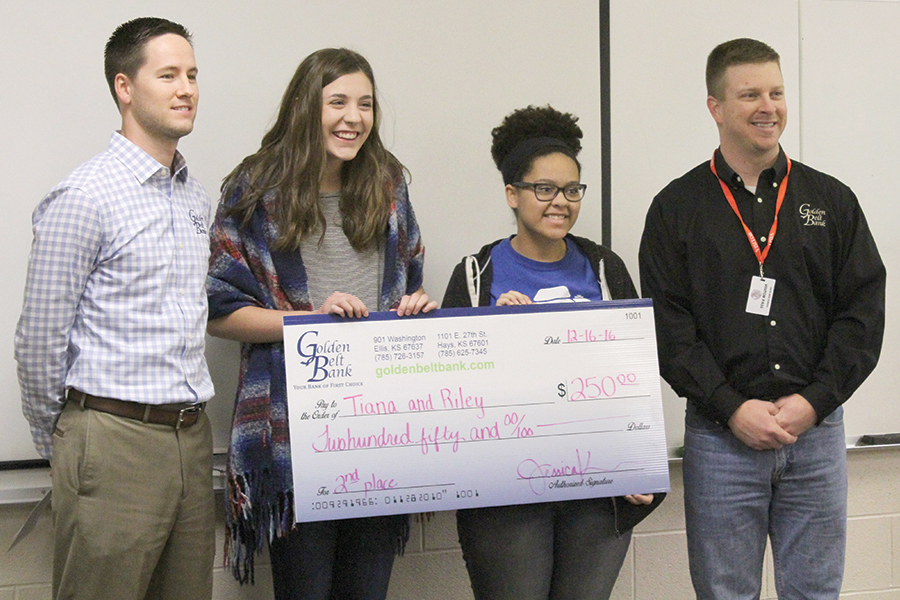 Two representatives, HHS graduates Nathan Legleiter and Jason Ball, came from the bank to announce the winner and present them with a check.