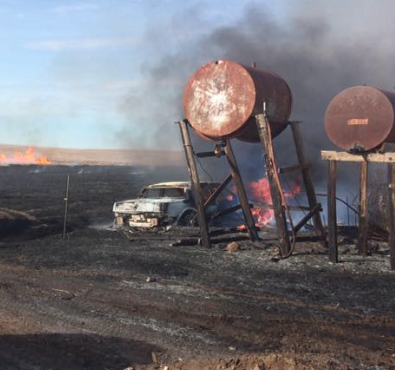 HODGEMAN COUNTY – Fire crews were busy with a large grass fire on Tuesday in Hodgeman County.