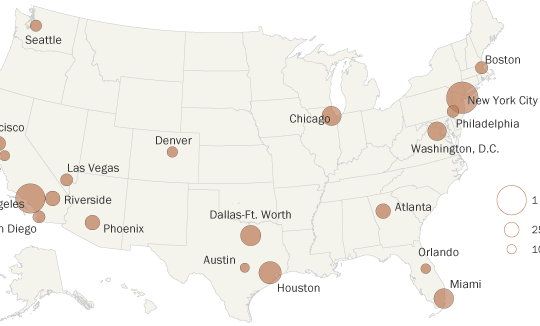 The report released Thursday by the nonpartisan Pew Research Center estimates more than 2 million immigrants in the country illegally lived in the two areas in 2014.