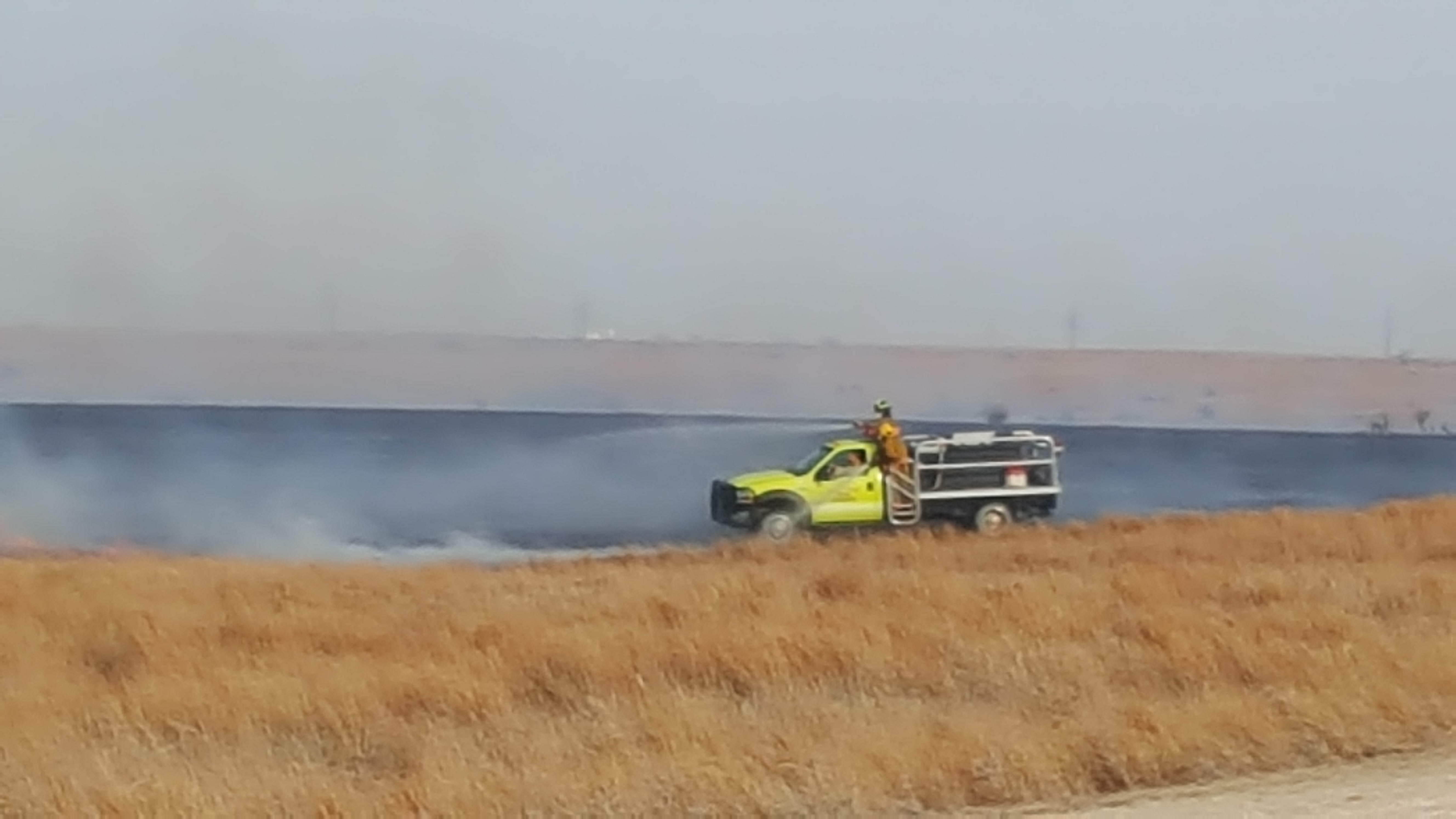 At approximately 3:30 p.m. Thursday, Ellis County fire crews were called to 260th and Horse Thief Canyon Road for the report of grass fire, possibly started by a pickup pulling a bale.