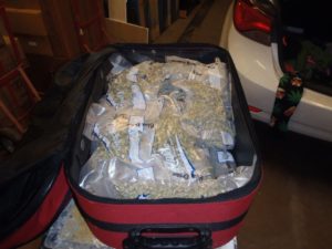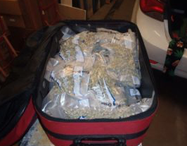The deputy noticed a strong odor of marijuana inside the vehicle and then found 13-pounds of marijuana wrapped in baggies and stored in a suitcase.