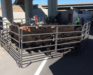 A semi-trailer truck overturned Friday near Lenexa, releasing cows in all directions. Highway ramps were closed for hours while several law enforcement and private individuals tried to capture the nearly 35 cattle that escaped. The effort ended when the sun went down.
