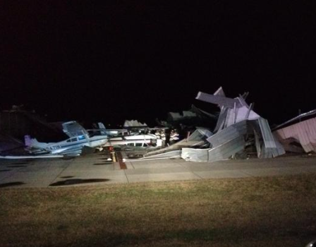 Pittman says one hangar at the Johnson County Executive Airport in Olathe was destroyed and at least five more were damaged in the storm Monday night. He says the airport is closed while damage assessment and cleanup are underway.
