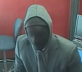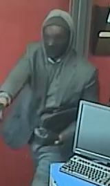 Just before 4 p.m. on Monday, the suspect in the security camera photos entered the U.S. Bank branch, 1807, West 23rd Street in Lawrence with a gun and demanded money, according to a media release.