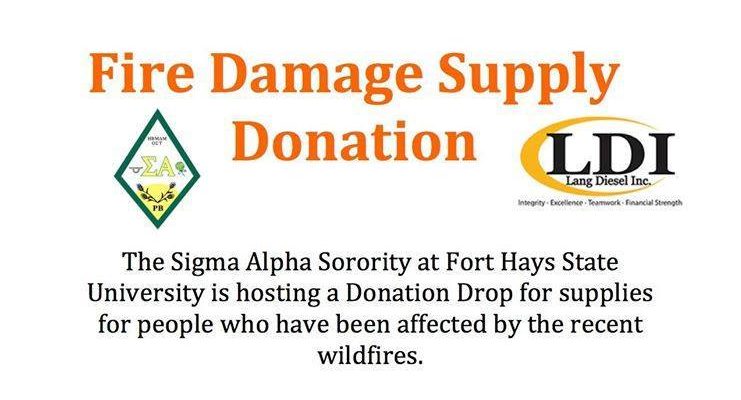 The Fort Hays State University Sigma Alpha Sorority and Lang Diesel Inc. are teaming up to host a dropbox for donations to benefit those affected by wildfires across the state.