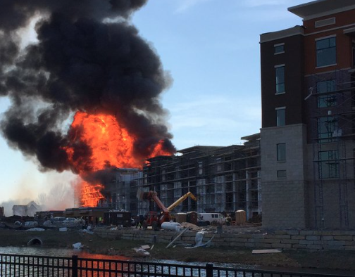 The Kansas City Star reports that the Monday blaze at the multimillion-dollar City Place development in Overland Park blew plumes of smoke and embers along rows of homes nearby.