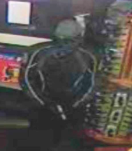 He wore a black or blue bandanna over his face and gray pullover/beanie hat with black stripes. His pants and shoes were dark, possibly black. When the employee opened the cash register, the man grabbed an undisclosed amount of cash, and ran away.