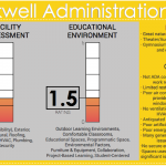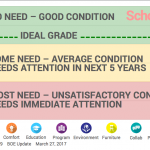 DLR presented graphics indicating what areas the schools were good, average and poor in as far as facilities and learning environments.