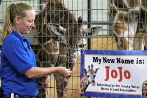 Jojo was born on November 27, 2016, weighing 117 pounds and standing six-feet-tall. Saline County elementary schools; public, private and the Home Schoolers Association submitted the 12 names. Zoo guests voted on them March 1-26.