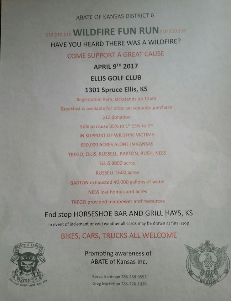 ABATE of Kansas Dist. 6 Wildfire Fun Run Sunday