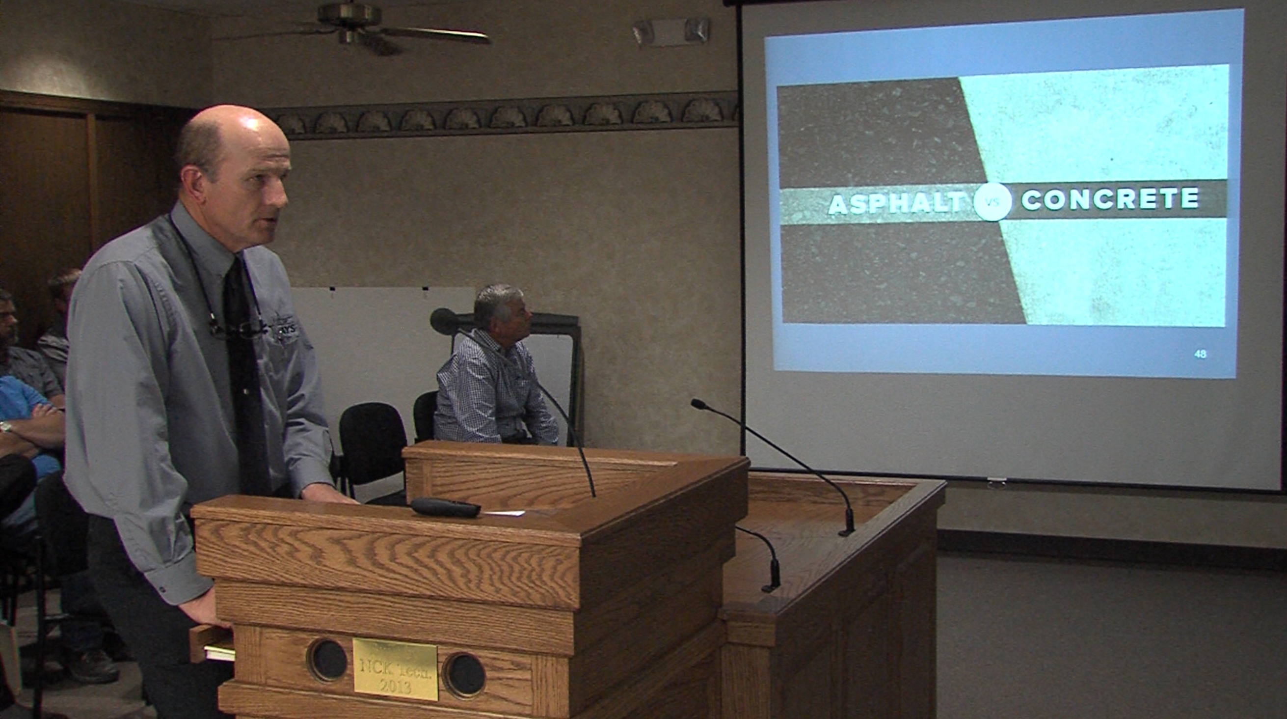 John Braun, Asst. Hays Public Works Dir., explains the benefits and disadvantages of asphalt and concrete paving.