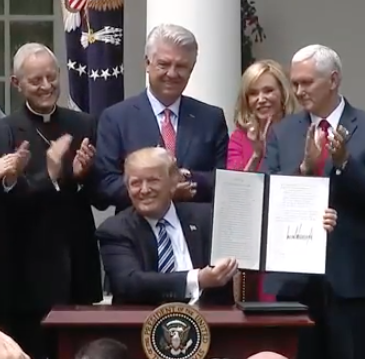 Trump signed the order at a White House ceremony marking the National Day of Prayer.