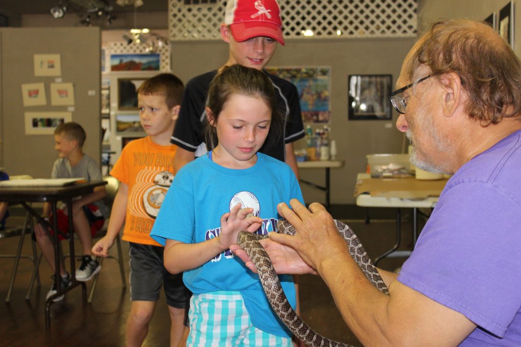 The first class on snakes was Tuesday and Wednesday and Mitch Sommers, a volunteer for the Sternberg Museum, introduced the children to Buddy, a prairie rat snake.